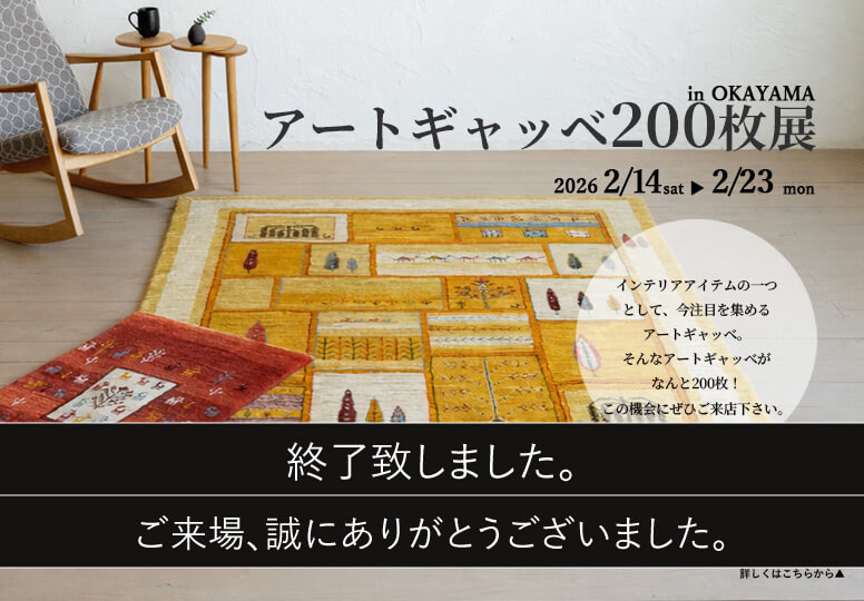 イランの南西部に伝わる、美しさと肌触りのよさが魅力の、遊牧民族の暮らしから生まれた手織りのじゅうたん、アートギャッベ200枚展が大盛況のうちに終了いたしました。ご来場いただきました皆様、ありがとうございました。