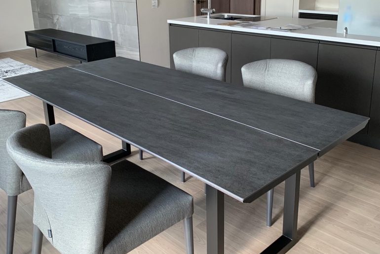 中心となるダイニングテーブルは、セラミック天板と